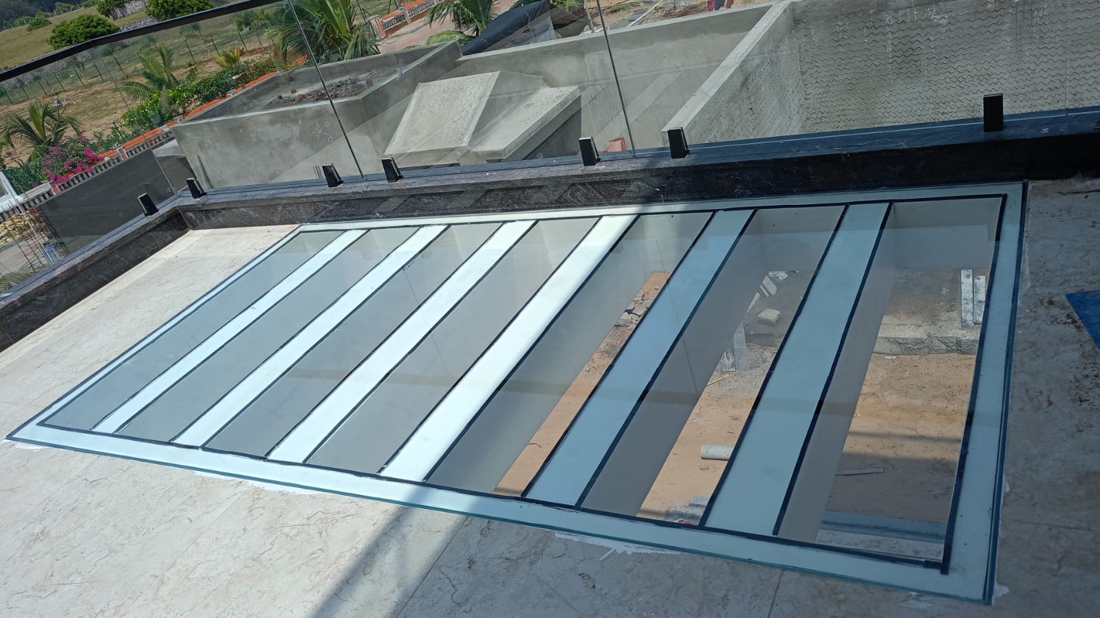 Elegant overhead glass installations for outdoor charm and protection.